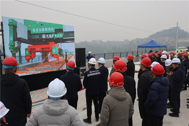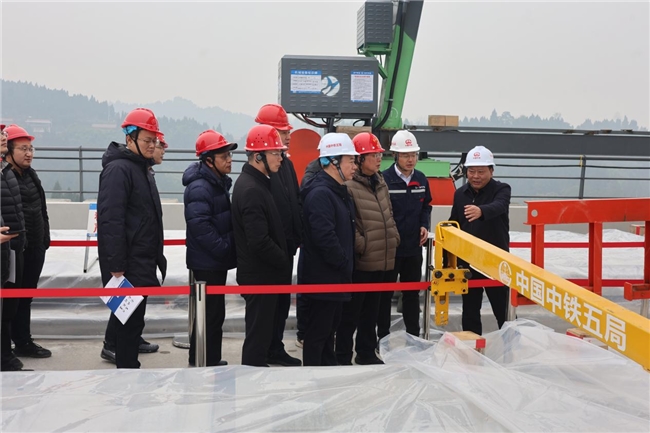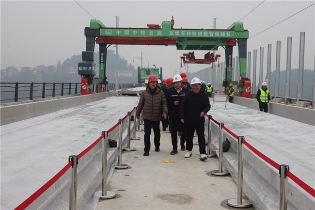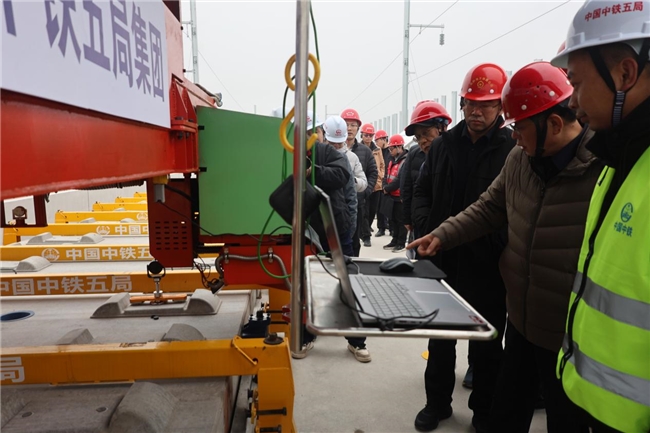 调研团观看了中铁五局无砟轨道智能建造首件段视频介绍。