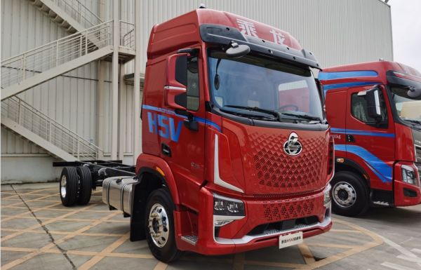 “除了载货和牵引之外,我们还为乘龙H5V新能源车设计了‘珍珠白’,尽显高贵气质,寓意洁白无瑕,让人产生对环保理念的共情;混动车型是‘冰晶蓝’,偏清冷的质感,蓝得非常清澈透亮,有种前卫先锋的律动感;自卸车型是‘工程黄’,醒目亮眼,高识别度,起到警示提醒作用,且非常耐脏,很好地适应了工况场景。”
